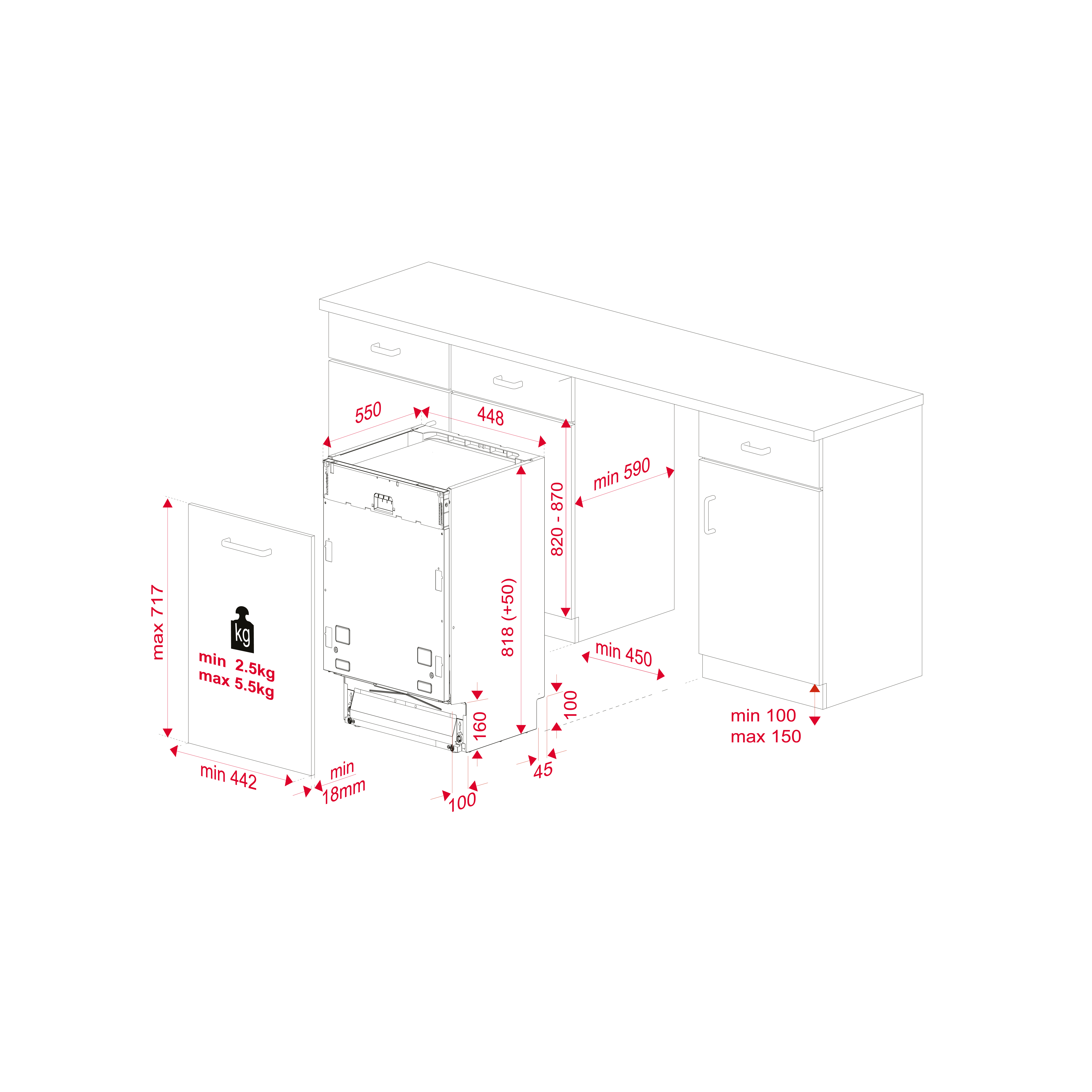Благодаря нашей инновационной системе вы можете установить дверцы длиной до 800 мм без проблем с цоколем кухни. Когда посудомоечная машина открыта, сдвижная система SlidingDoor поднимает дверцу так, что она не задевает за цоколь. Идеальное встраивание и гармония у вас на кухне.