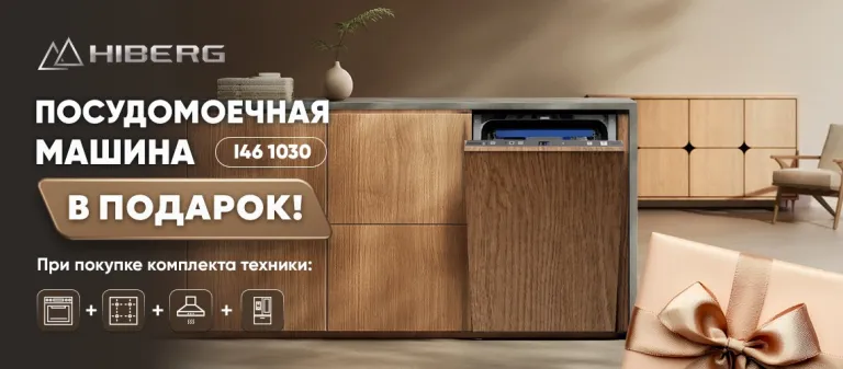 При покупке комплекта встраиваемой техники HIBERG посудомоечная машина в подарок!